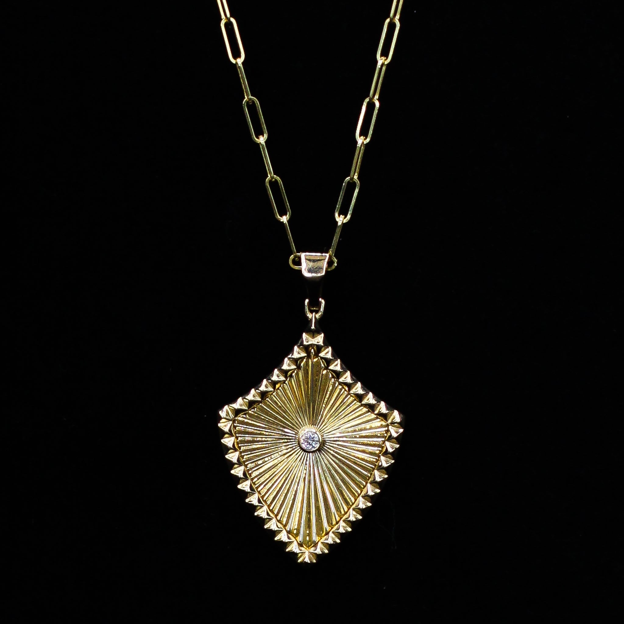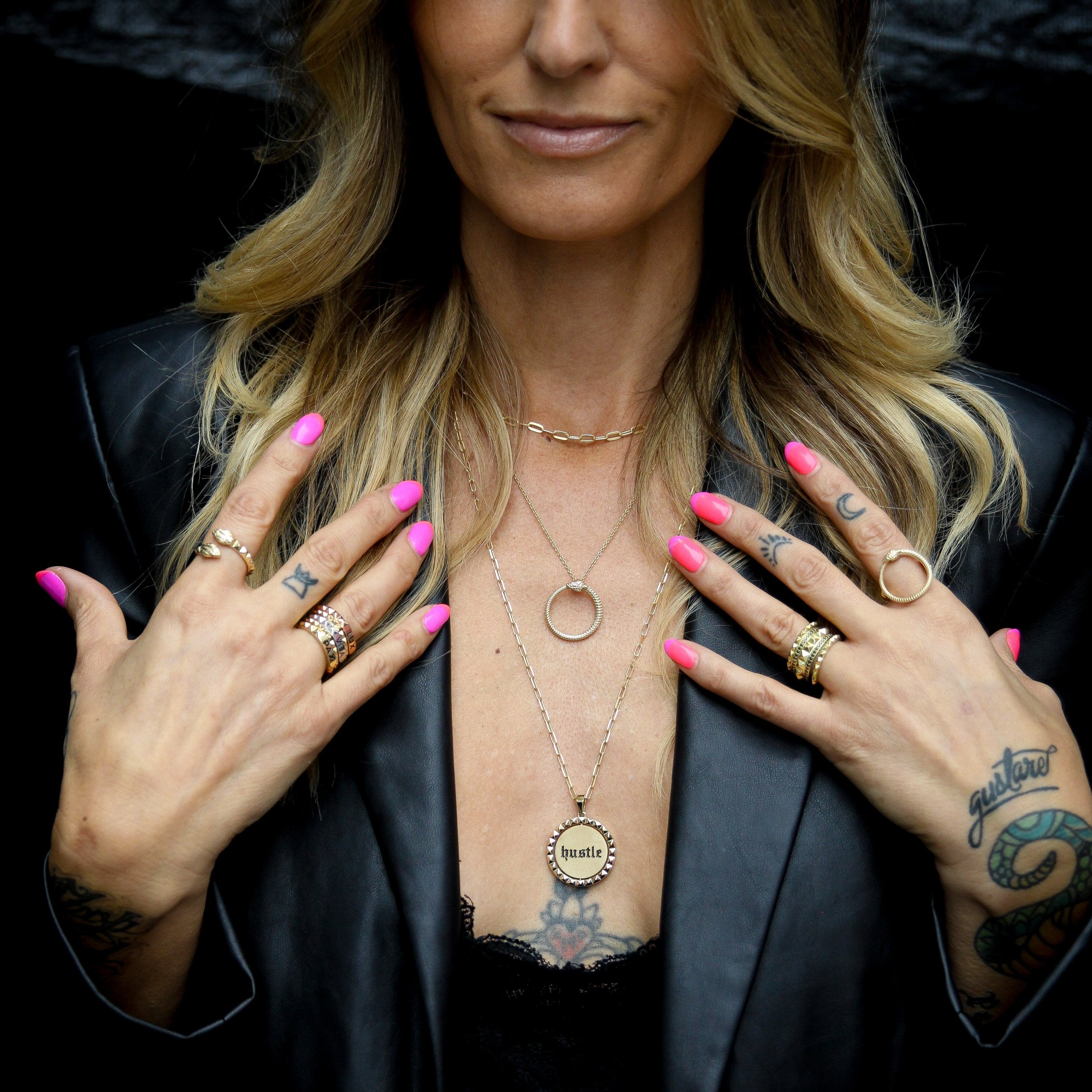 Adorn your heart with our soulful pendants and necklaces. Select from our collections or customize to create a statement message that is all your own. Choose from yellow, white, or rose gold, and a wide selection of ethically sourced gemstones. Enamel inlay is available in any color of your choice, and we offer a variety of chain lengths. The one thing you can always count on is that our pieces are solid gold, handmade in downtown Los Angeles, and crafted to last generations. This is sustainable luxury at its best.