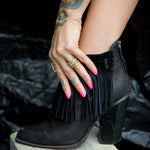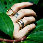 While our signature studded band is both edgy and classic, it also holds another layer of meaning. As Anjalé painted she was inspired by snakeskin texture, and designed this band as a reminder that we can choose to shed our skin, as revealed by the lovely serpent.