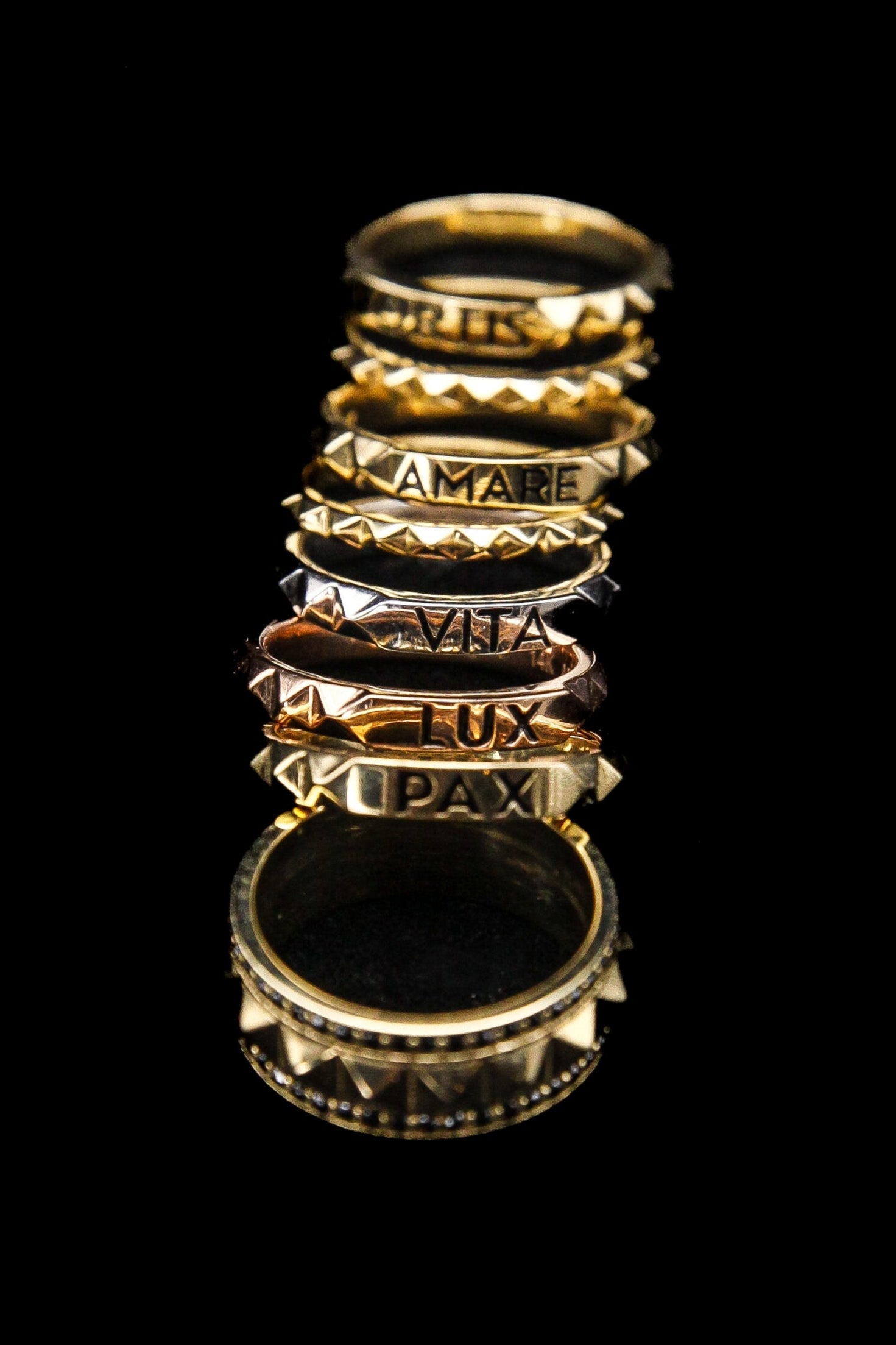 At Anjalé, we invite you to add a personal touch with our custom enamel inlay, bringing your chosen words to life in any color of the rainbow.