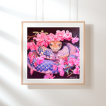 The cherry blossoms are in full bloom as this painting overflows with lush buds and foliage. An ode to spring and all that is pink, this piece oozes charm. Bring her into your home for luck in fresh ventures and new beginnings.