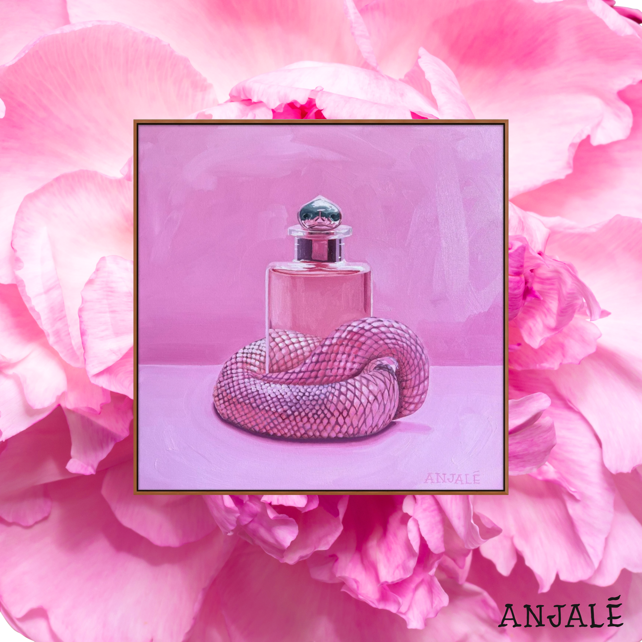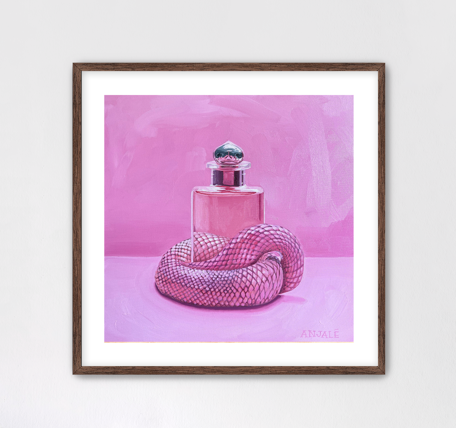 The Temptation series is here to offer a new way of viewing the world. Anjalé paints the snake in bright pinks, purples, and pastels to overturn the old binary of good vs. evil with a technicolor celebration of non-judgment and joy. What would happen if we all embraced the pleasure of the present moment without judgment? That’s the world she dreams of living in.