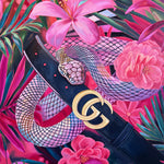 The iconic GG is reimagined in this vibrant tropical landscape. Welcome in the lush life.