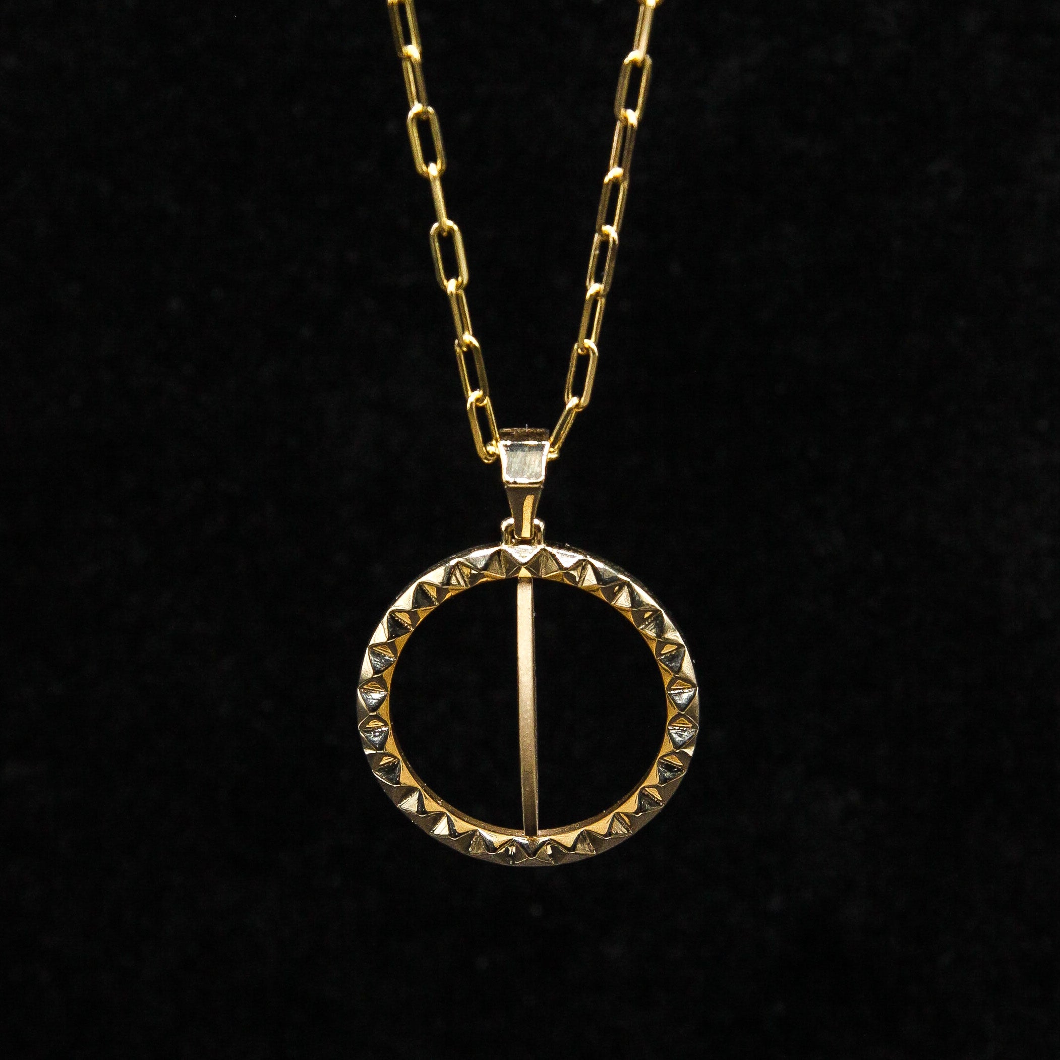 Your choice of an 18" or 24" 14K paperclip chain, this piece is sure to be a conversation starter.