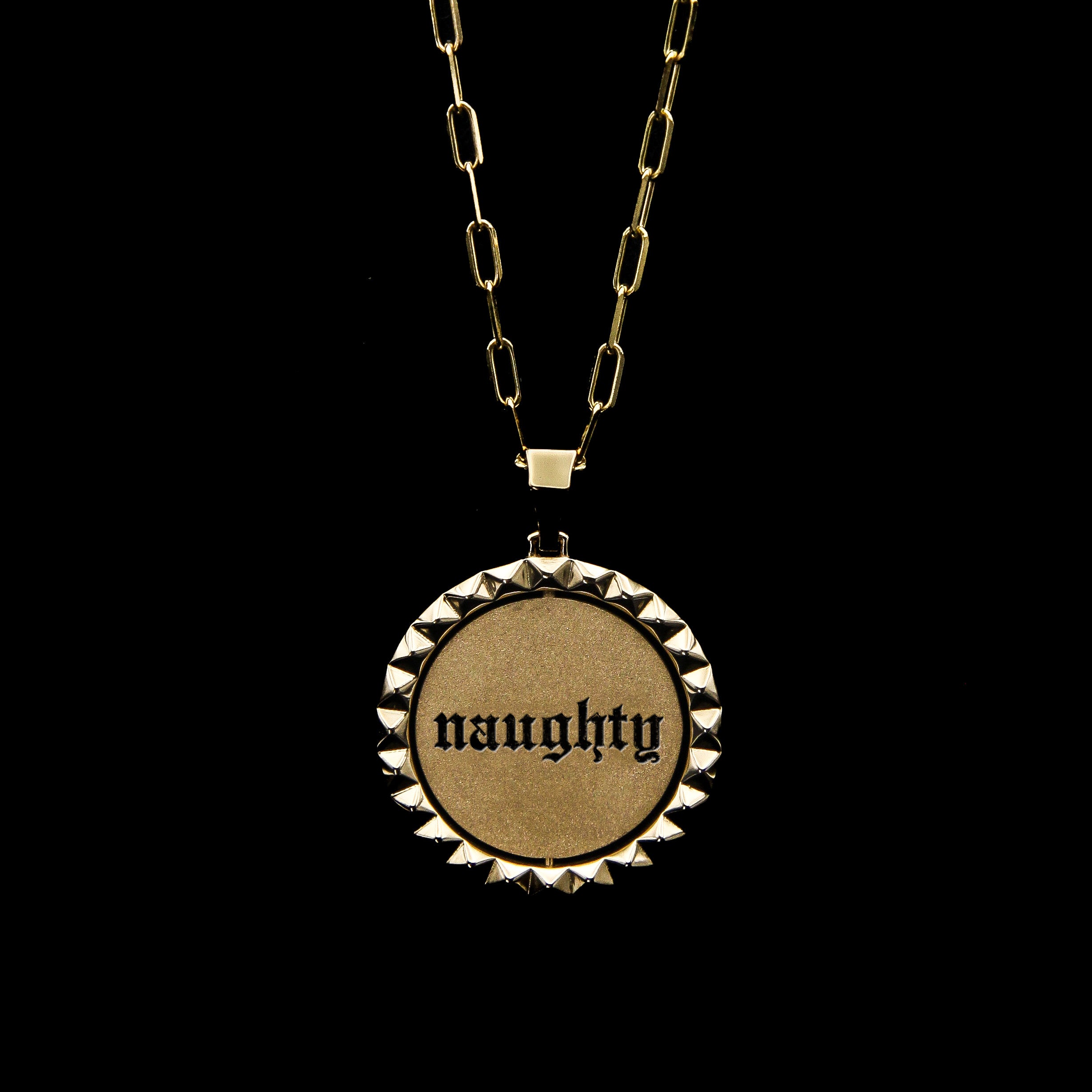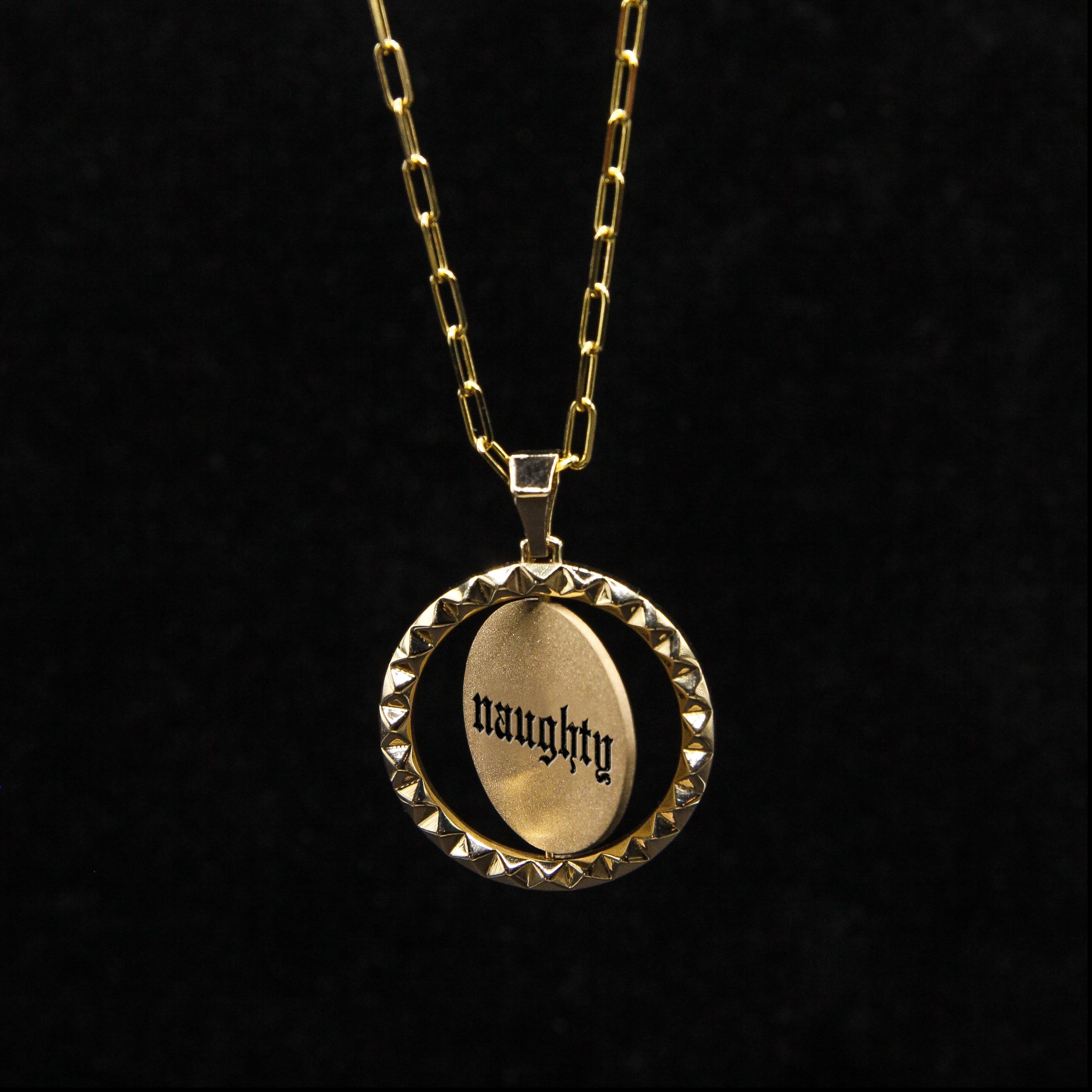 Part of the Coin Flip Collection, the NAUGHTY | NICE pendant celebrates both sides of your personality.