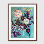 Breathe in, breathe out. That is what this piece offers. A respite from the hustle and bustle. Calm amidst the daily grind. Seafoam blues and cool greens calm the senses and move the eye around the canvas. Pale blooms pop forward with life, radiant and shining. This canvas is a safe haven, a pause button, a meditation within itself. Both relaxing and enlivening it is the perfect compliment to any room in your home.