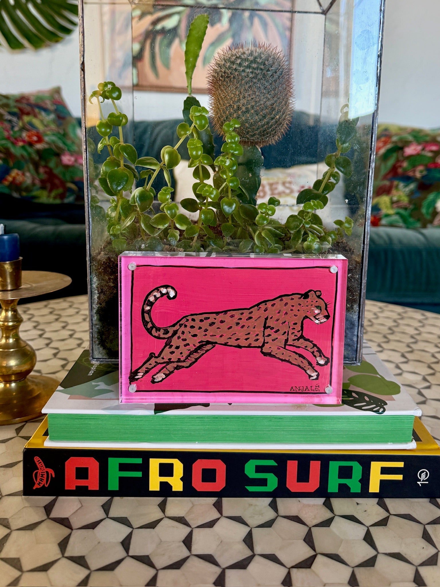 This fun original comes in an acrylic frame.