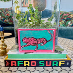 Hand painted in the signature flamingo pink as a base, on the reserve of the 'Temptation' solo show postcards this multi media painting uses sharpie, paint pen and gouache.