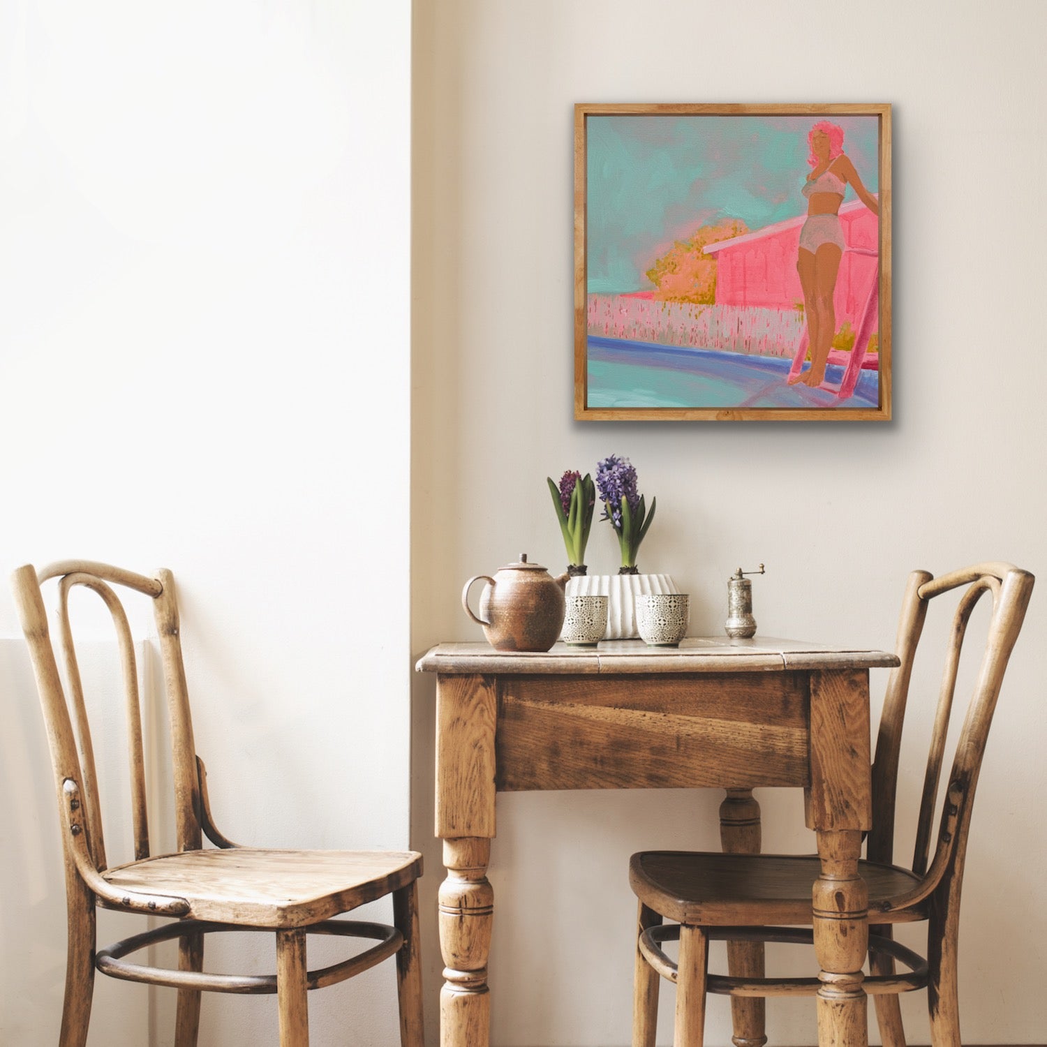 Original acrylic painting 20x20". Professionally framed in a gallery quality hand-stained solid poplar floater frame.