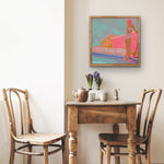 This piece is part of Anjalé's new playful figurative landscape series, Neon Nostalgia. Painting from vintage photographs - often black and white beach or pool scenes - she merges the vivid colors of her childhood memories in Los Angeles with each image, creating composite memoryscapes that feel entirely original. Fresh, quirky, and familiar, these paintings delve into themes of collective consciousness, shared experience, and reclaiming lost memories.
