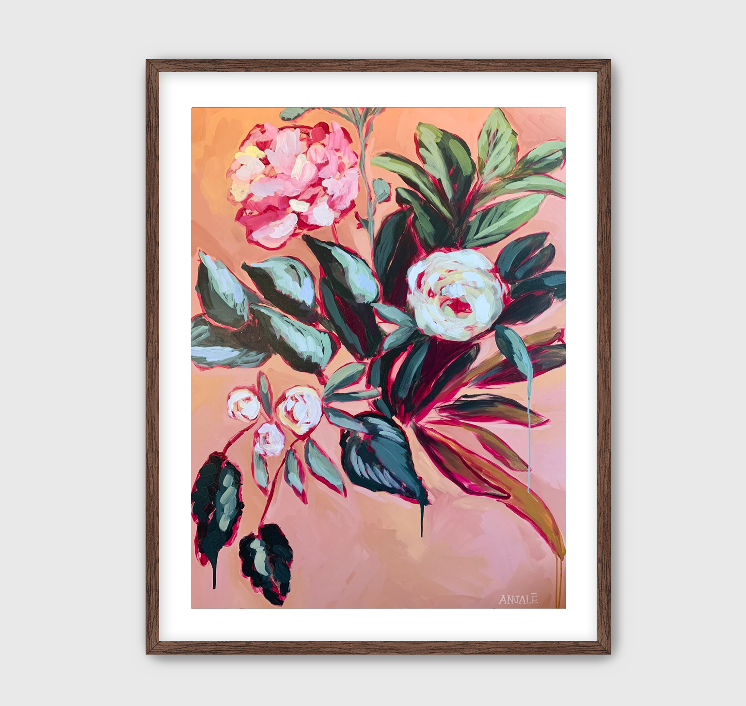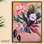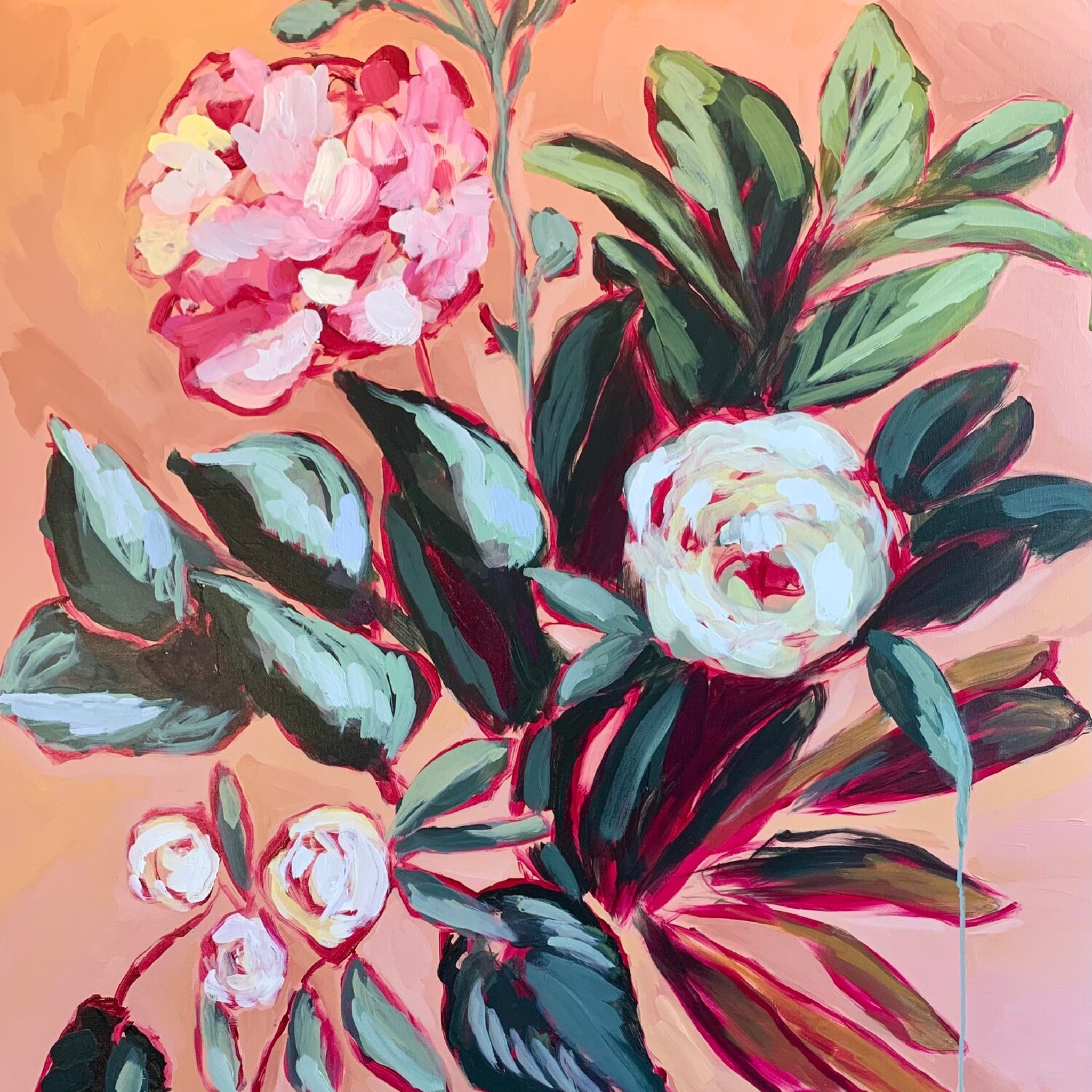 This piece is part of the Flower Bombs series. Each work is painted from life using expressive, open brushstrokes. Anjalé’s intention in this series is to capture the energy and flow of the florals through gesture and color, turning off the mind during the painting process and allowing the eye and heart to move the hand.