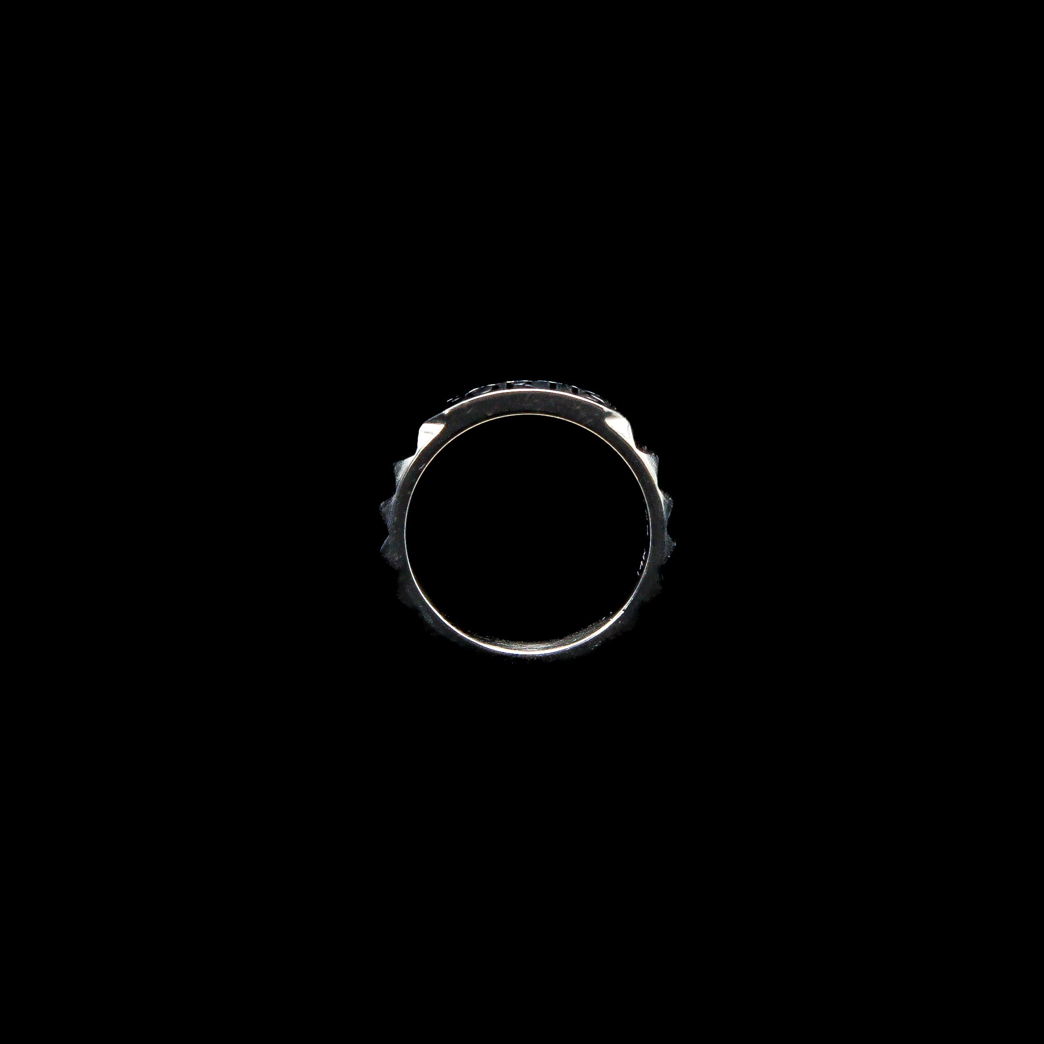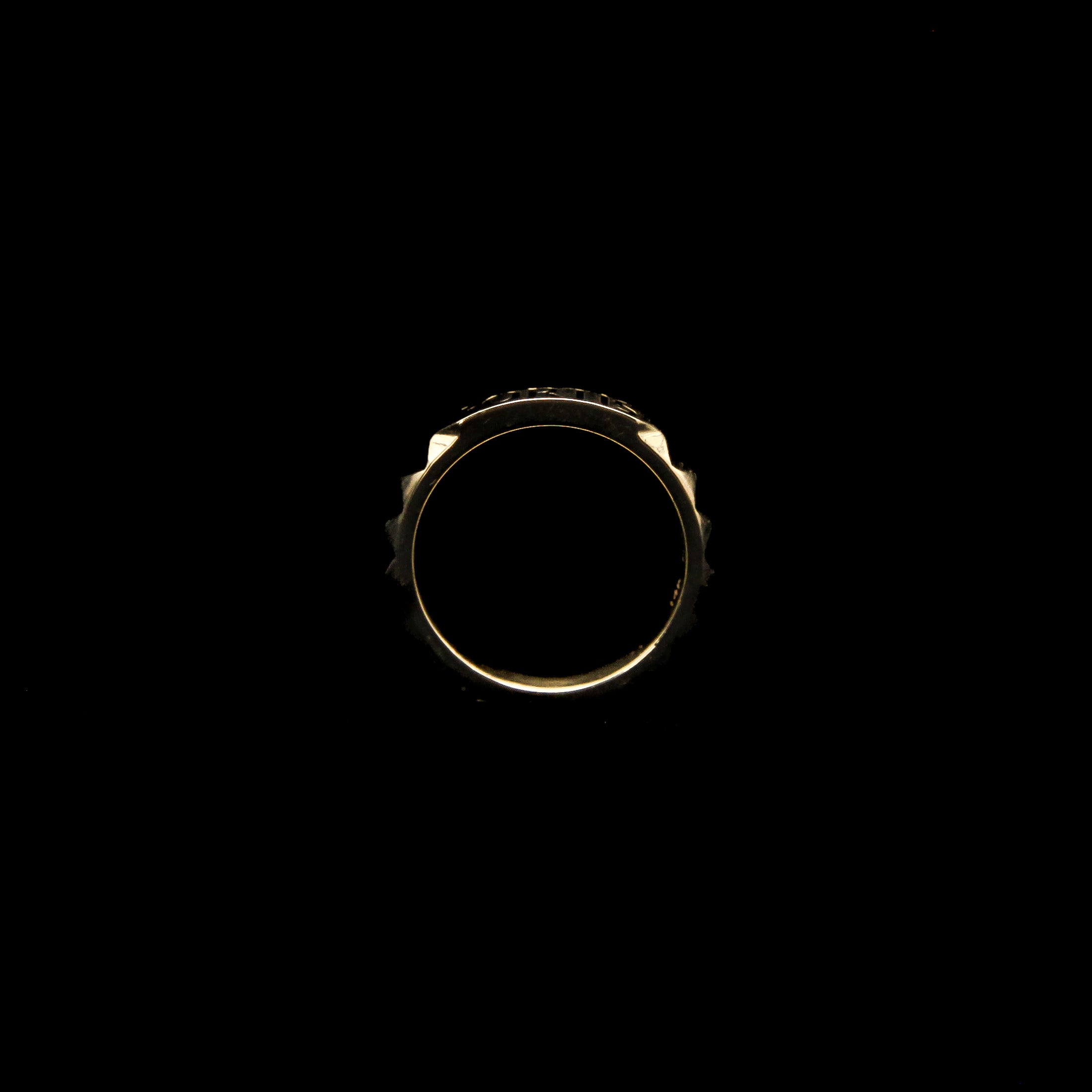 The intricately detailed studs of this piece are meticulously laser cleaned by hand, ensuring flawless delivery of this heirloom ring.