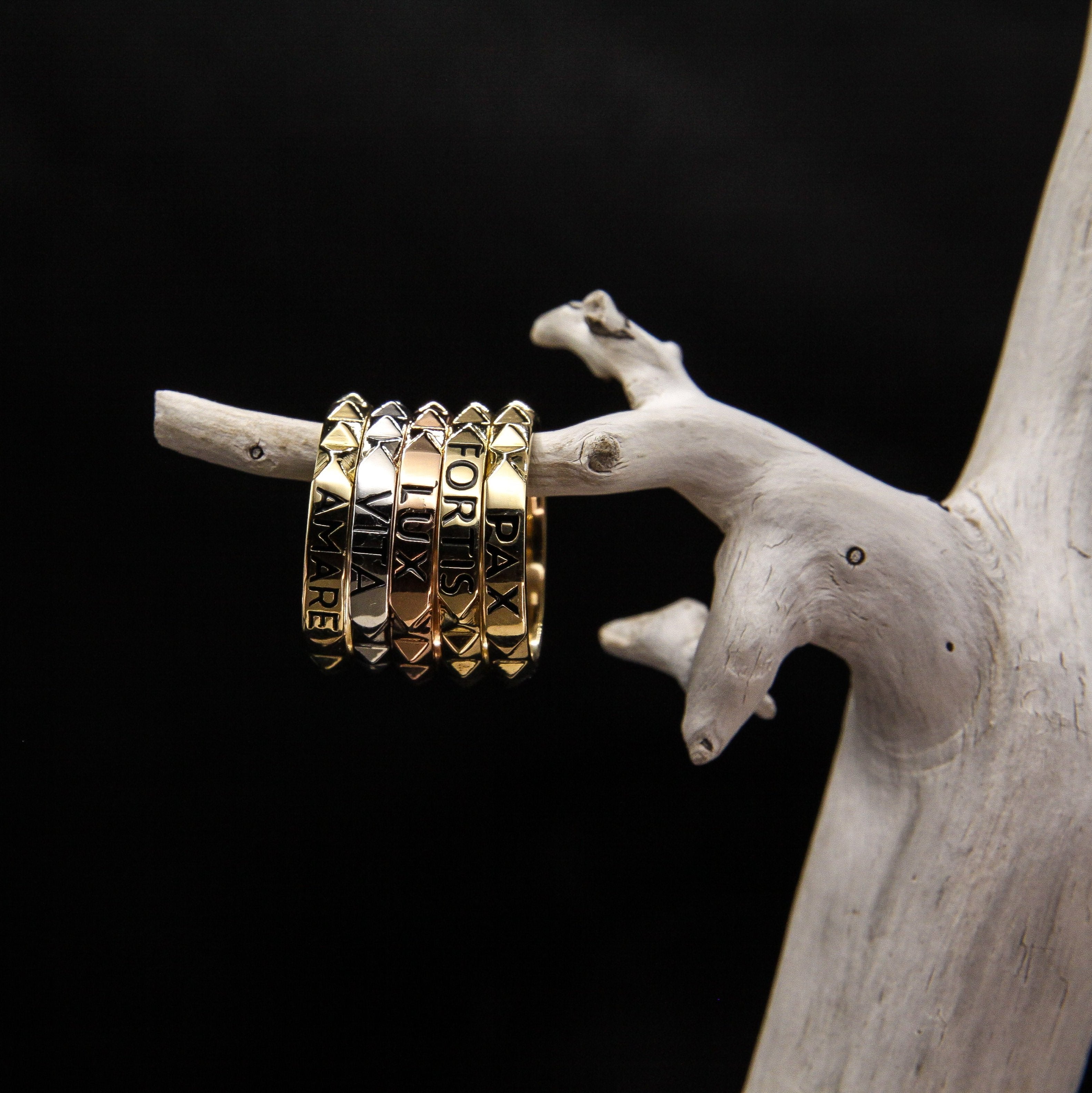 Part of the Love Language Collection, the FORTIS ring features the Latin word for courage.