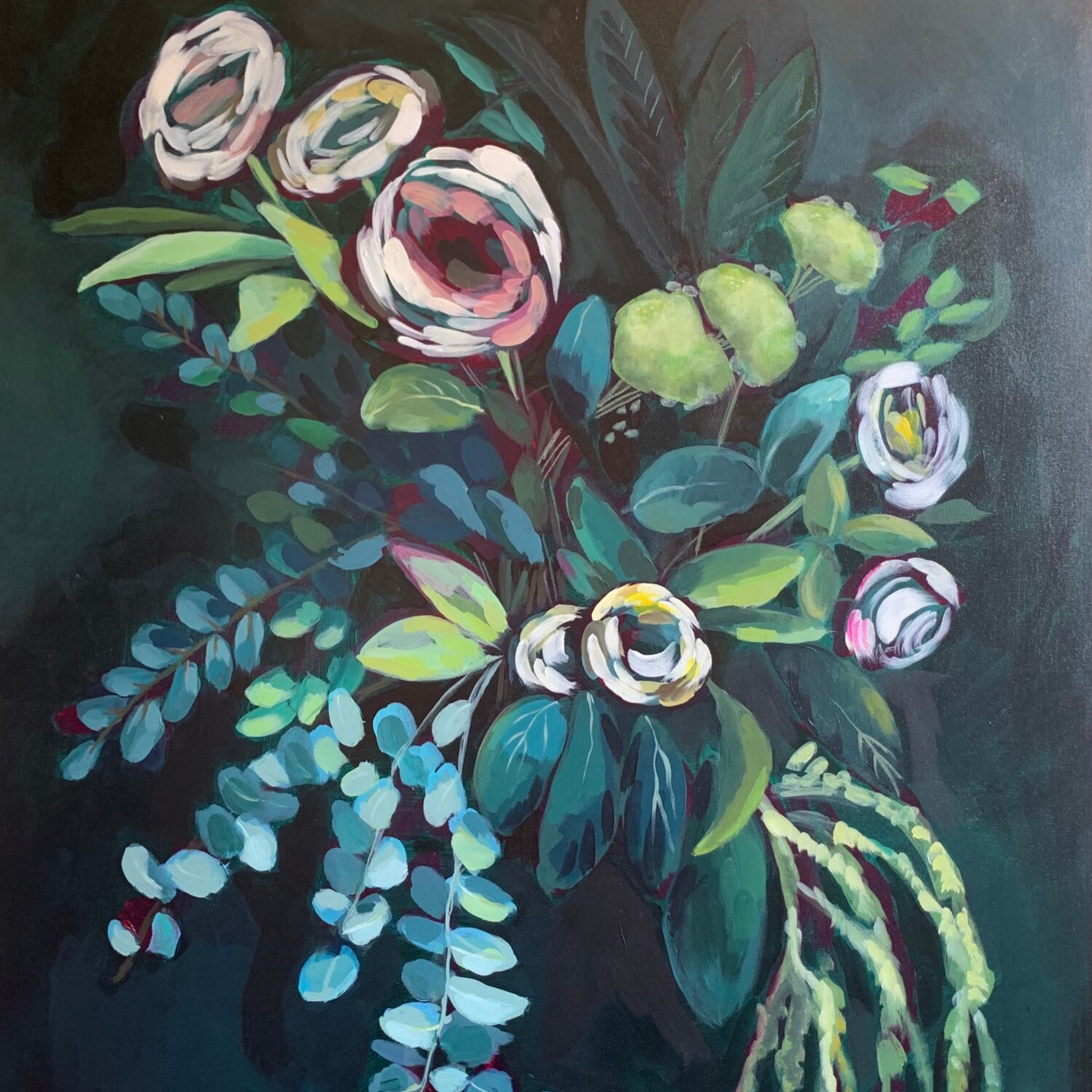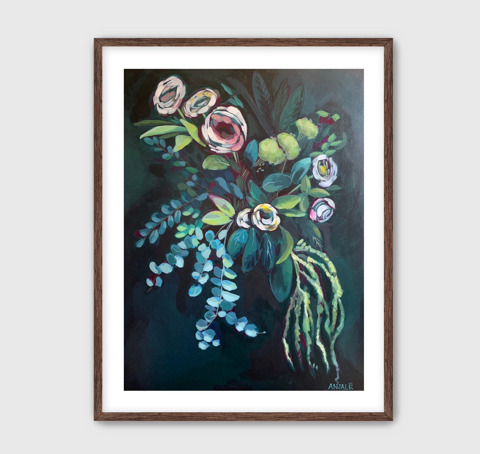 This piece is part of the Flower Bombs series. Each work is painted from life using expressive, open brushstrokes. Anjalé’s intention in this series is to capture the energy and flow of the florals through gesture and color, turning off the mind during the painting process and allowing the eye and heart to move the hand.